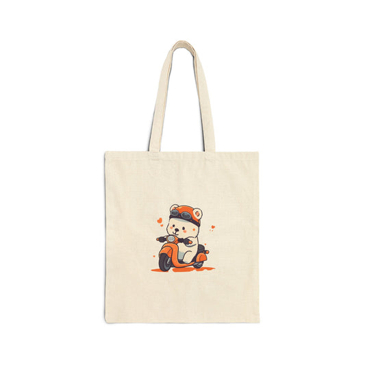 Adorable Bear Ride Cotton Canvas Tote Bag