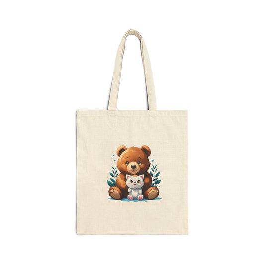 Bear n Kitty Cotton Canvas Tote Bag