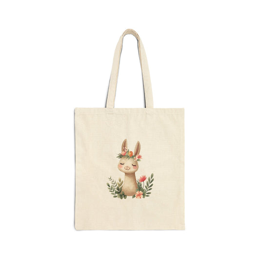 Cute Floral Girl Cotton Canvas Tote Bag
